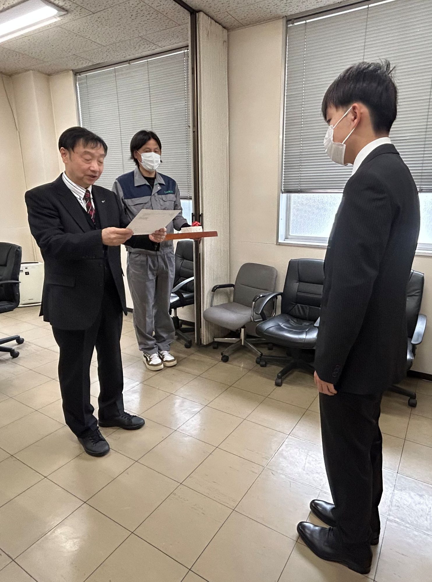 3/19(木)九州工場にて入社式及び辞令交付式が行われました。