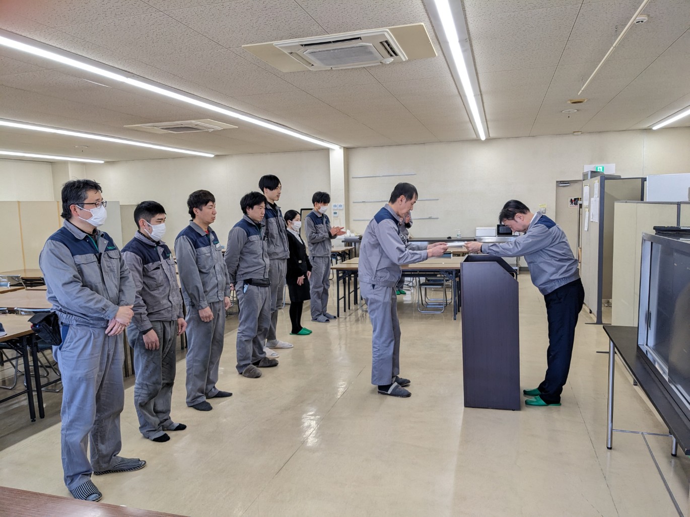 3/16(月)丸岡工場、3/17(火)大野第一工場、3/19(木)九州工場にて辞令交付式が行われました。